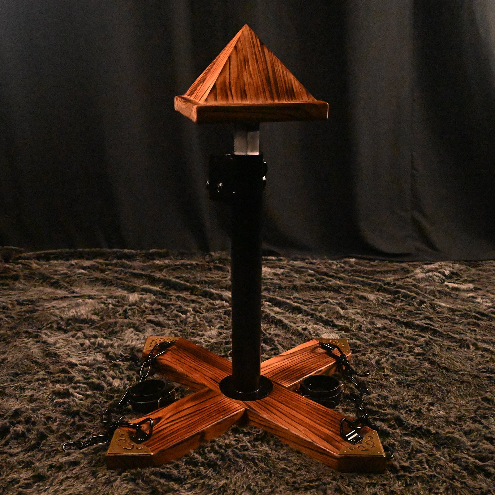 Brown Bondage Throne with Adjustable Restraint Features