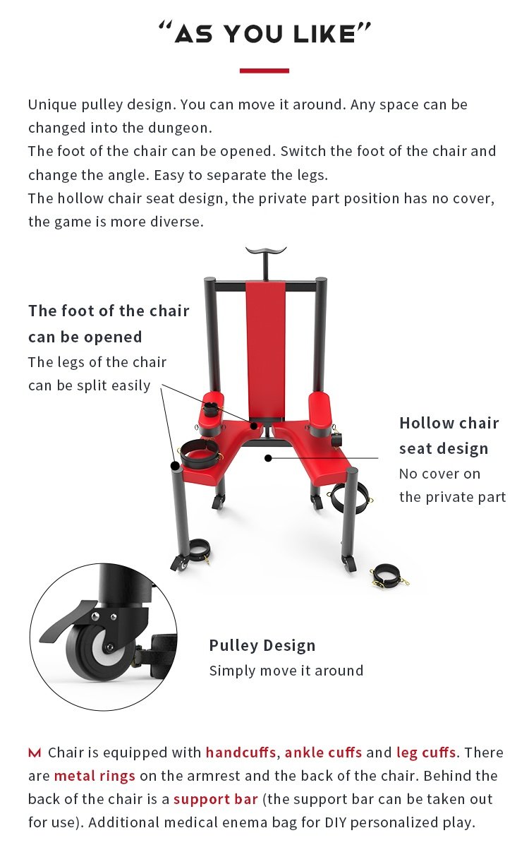 Red Restraint BDSM Chair with Adjustable Bindings