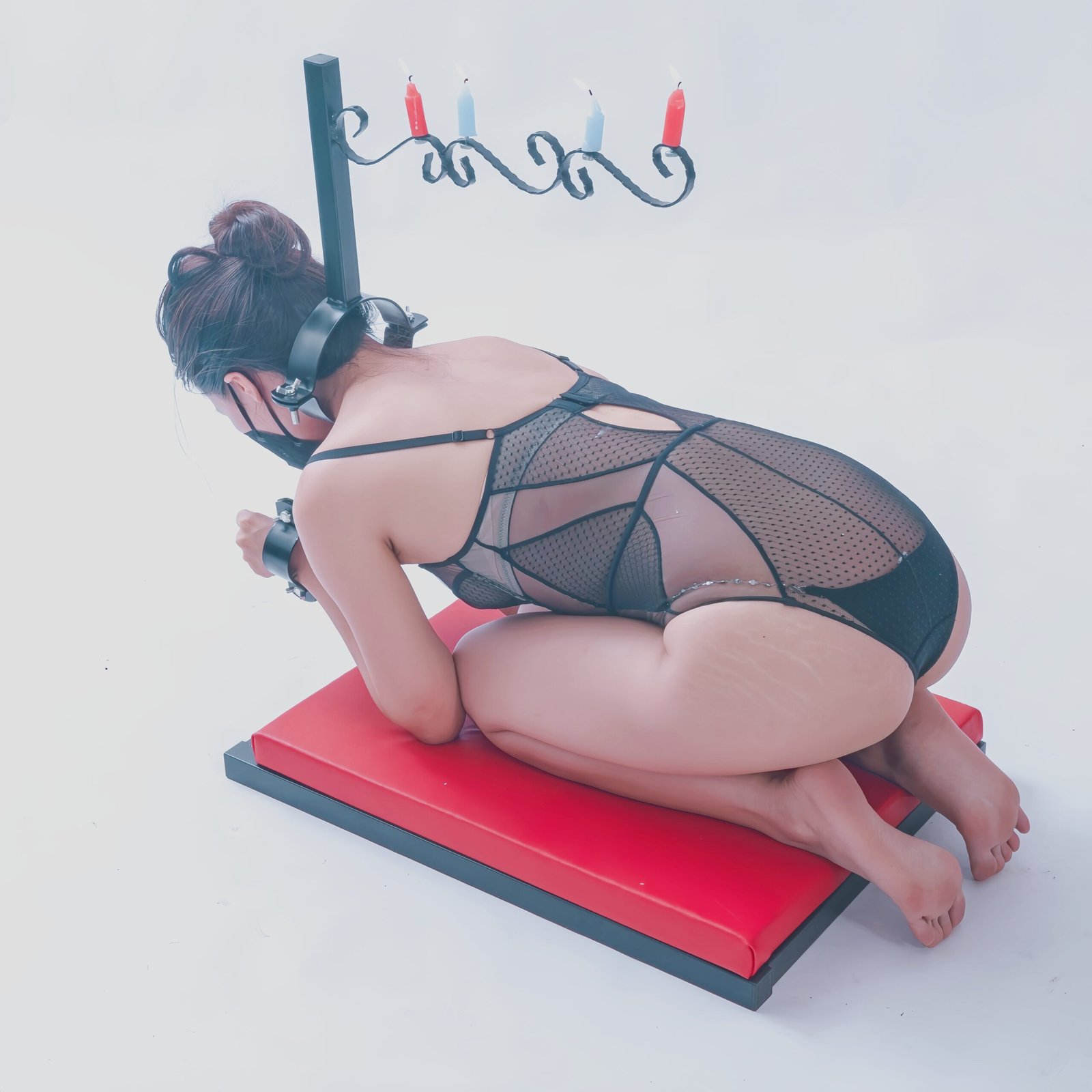 Red Restraint Submission Platform with Candle Holders
